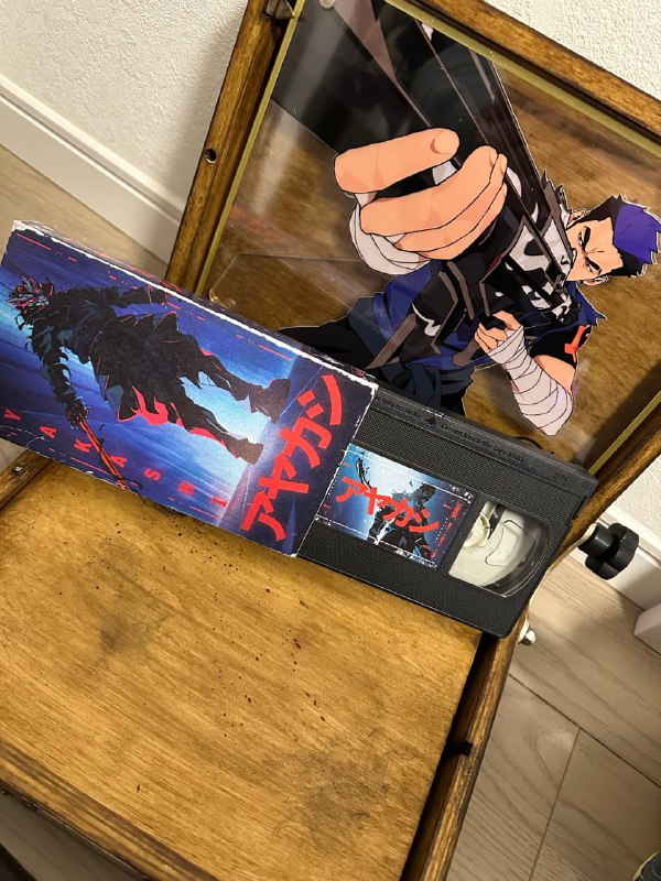 По фото видно комплект: стилизованная VHS‑кассета с мотивами «Аякаси», рабочий видеомагнитофон и сопроводительный вкладыш с брендингом. Такой набор выделяется на фоне обычных цифровых промо и напоминает о коллекционных раздачах Riot.